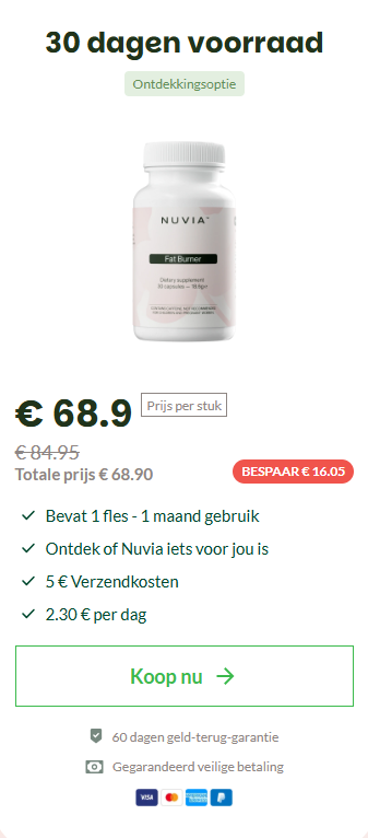 Met duizenden gebruikers die positieve ervaringen en minimale bijwerkingen melden, onderscheidt Nuvia zich als een mild en betrouwbaar supplement dat de natuurlijke vetstofwisseling, energieproductie en een gezonde en gebalanceerde levensstijl ondersteunt.