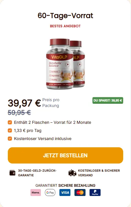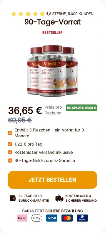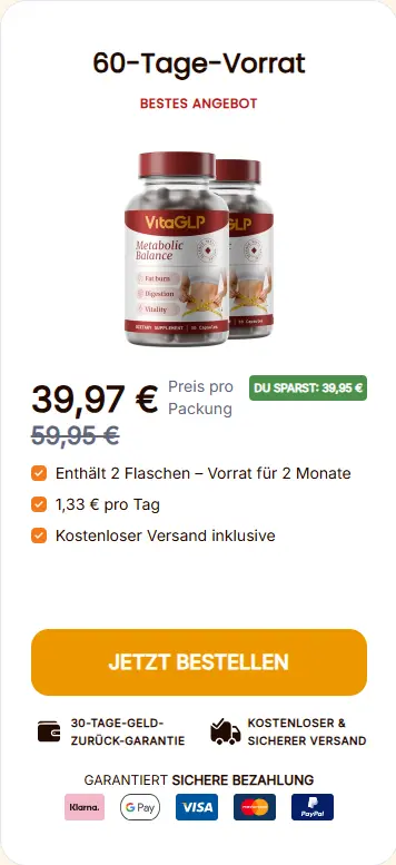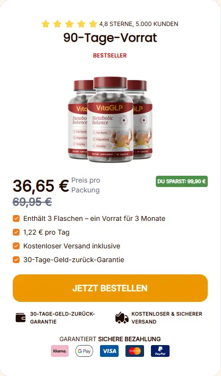 Viele Interessenten suchen gezielt nach „VitaGLP seriös“, weil sie vor dem Kauf sicher sein möchten, dass es sich um ein vertrauenswürdiges Produkt und eine sichere Bestellung handelt. Genau deshalb ist es wichtig, nur über die offizielle Website zu bestellen.